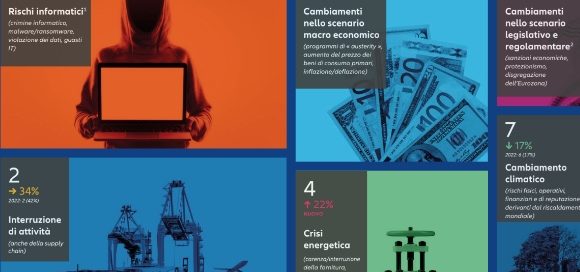 Monaco di Baviera (Germania) – Nella classifica dei rischi più temuti dalle aziende di tutto il mondo, pandemie, catastrofi naturali e cambiamenti climatici scendono di posizione mentre attacchi informatici, inflazione, crisi energetica e possibile recessione destano le maggiori preoccupazioni. Questa è la fotografia scattata da Allianz Risk Barometer 2023. Gli incidenti informatici sono il rischio